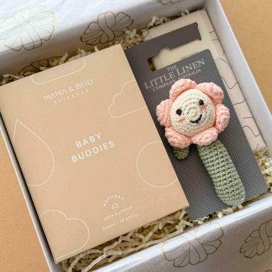 At Ginger B, we understand that a new baby arrival is a very special time. Whether you're looking for the perfect baby shower gift or something to welcome your own little one into the world, our natural and organic baby hampers are filled with beautiful products that are gentle on precious skin.