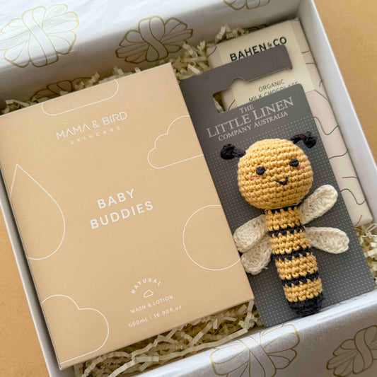 At Ginger B, we understand that a new baby arrival is a very special time. Whether you're looking for the perfect baby shower gift or something to welcome your own little one into the world, our natural and organic baby hampers are filled with beautiful products that are gentle on precious skin.