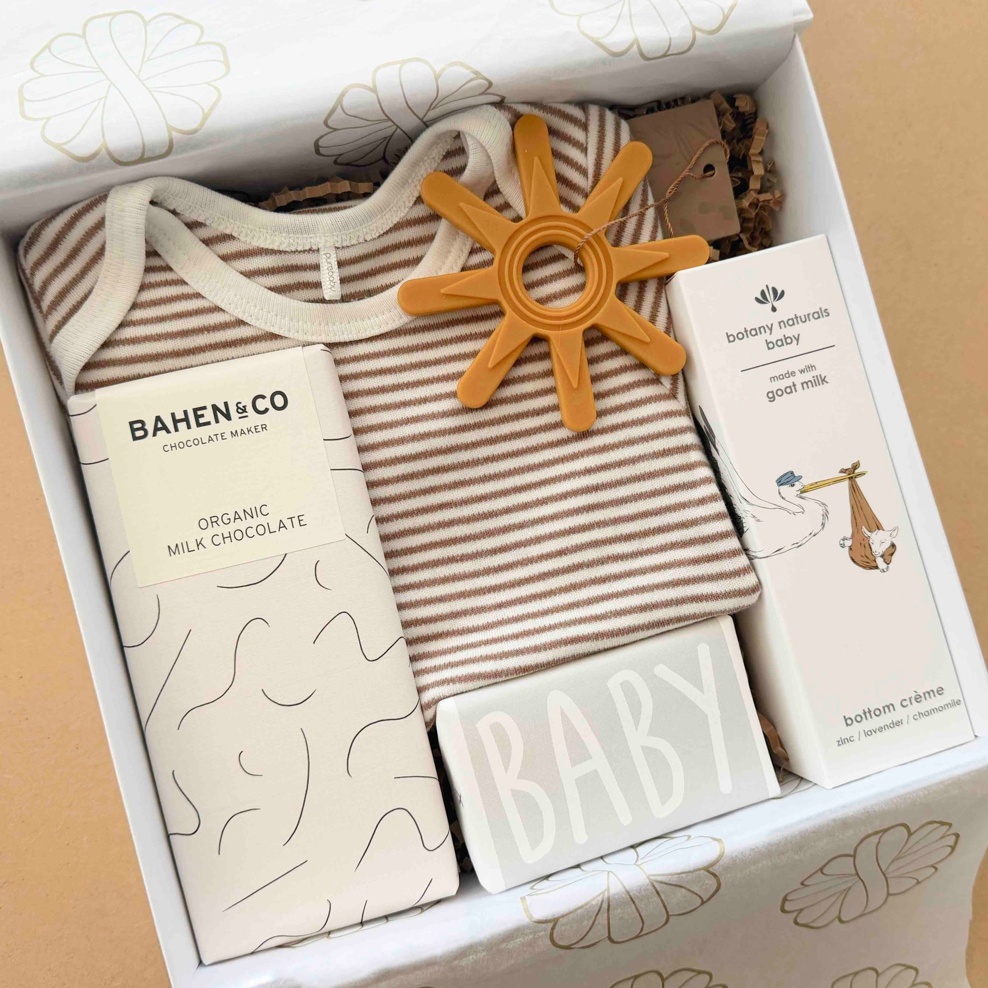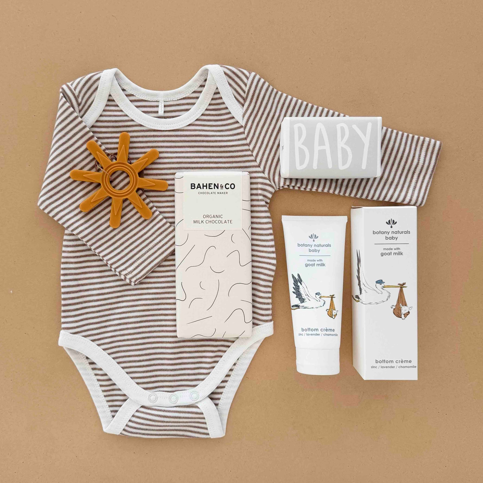 A thoughtful selection of items that are gorgeously natural, practical and simply perfect to welcome a new baby into the world.