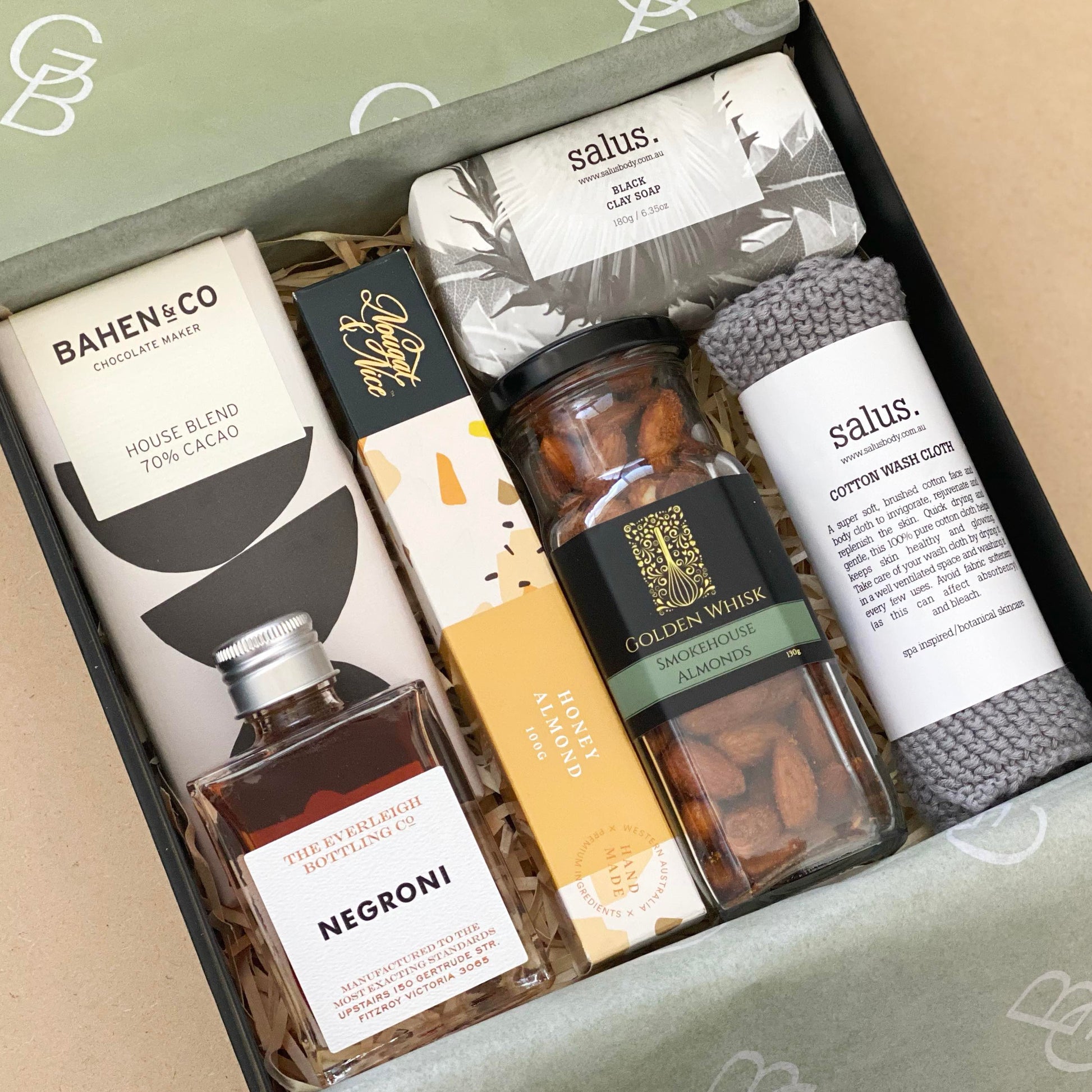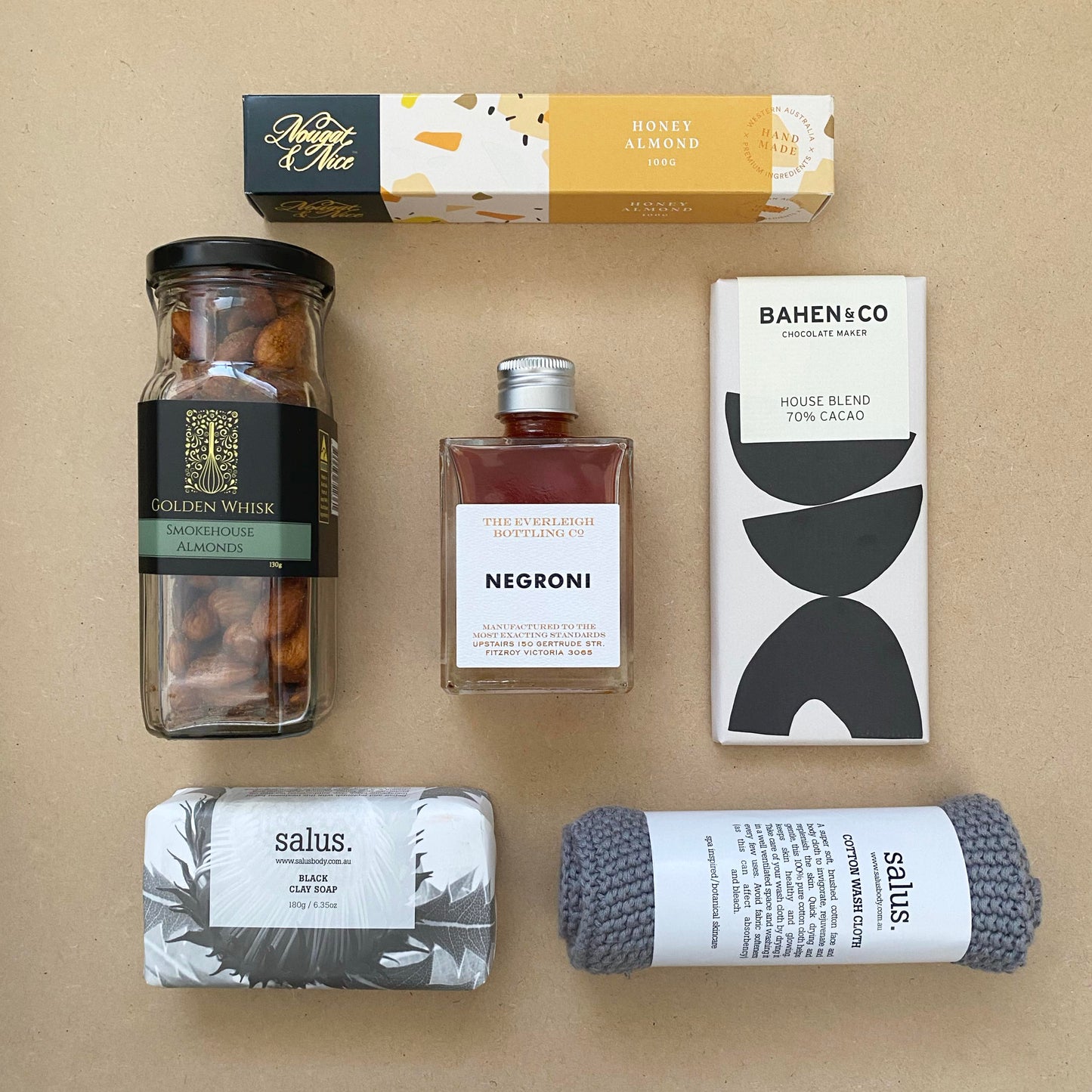 For the on-trend man, this gift is filled with luxe natural products and treats.