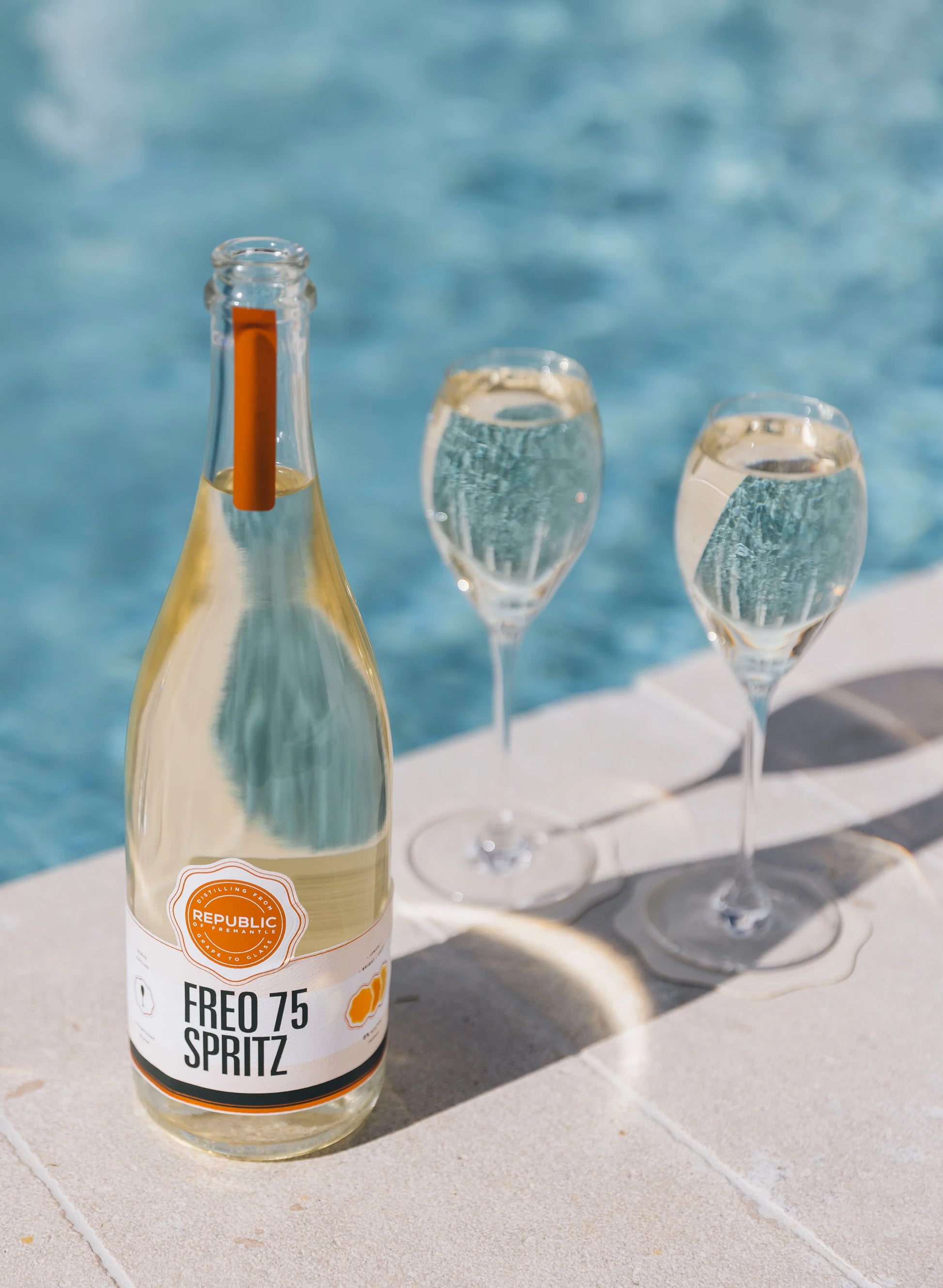 Freo 75 Spritz: Featuring RoF Aromatic Gin, Margaret River Chardonnay, dry vermouth, lemon verbena and lemon myrtle.